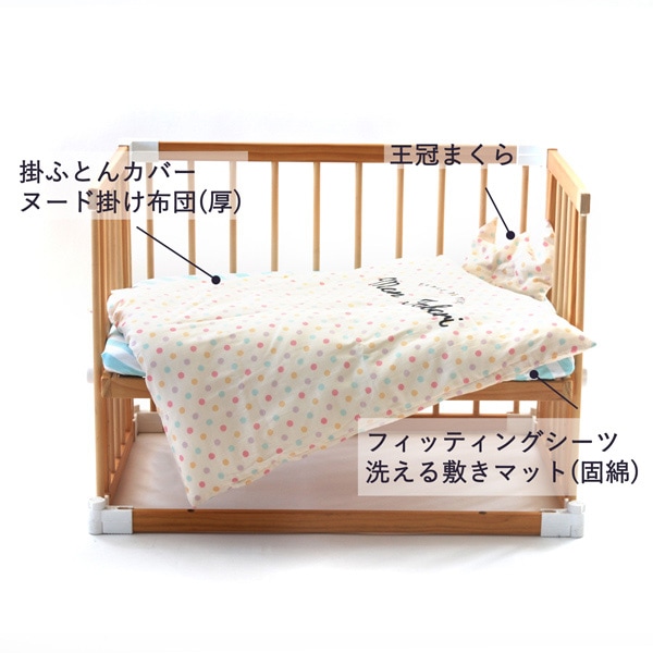 綿100%の2重ガーゼ素材のミニサイズベッド用ベビー布団セットです。