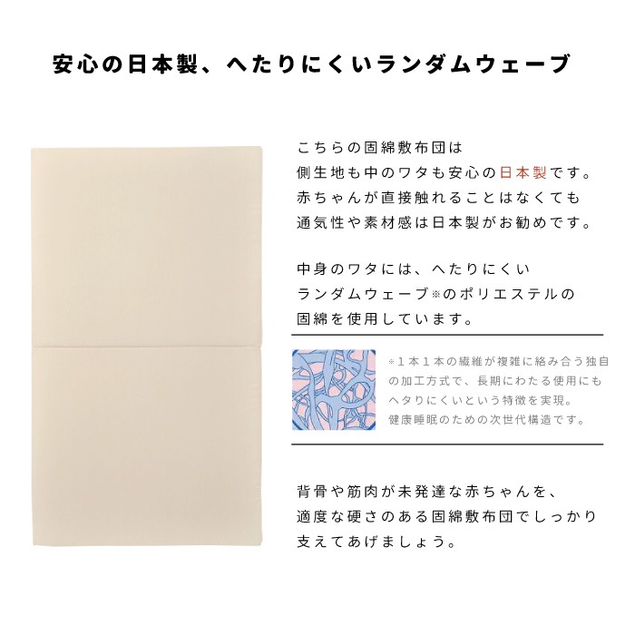 〇敷ふとん/側:綿100%、中身:ランダムウェーブ(ポリエステル100%、サイズ60cm×90cm