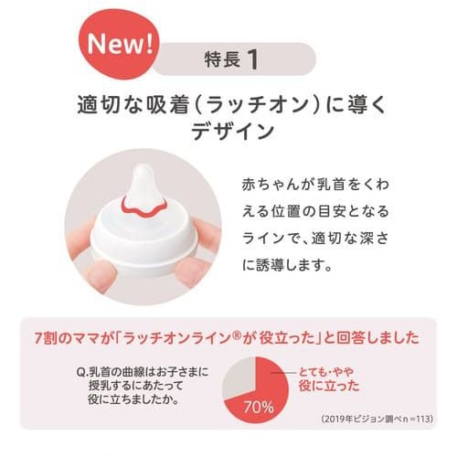 赤ちゃんが乳首をくわえる位置の目安となるラインで、適切な深さに誘導します。