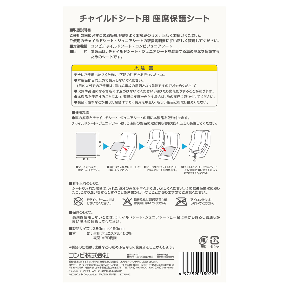 チャイルドシート装着時の座席の保護に!【販売商品】コンビ チャイルドシート用 座席保護シート