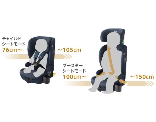 チャイルドシートモード※:身長:76cmかつ月齢15カ月以上~105cm