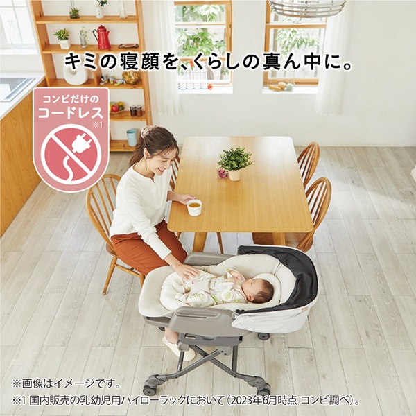 「オートスウィング」に、スリープシェルと洗えるランチトレイを搭載した、コードレスモデル。