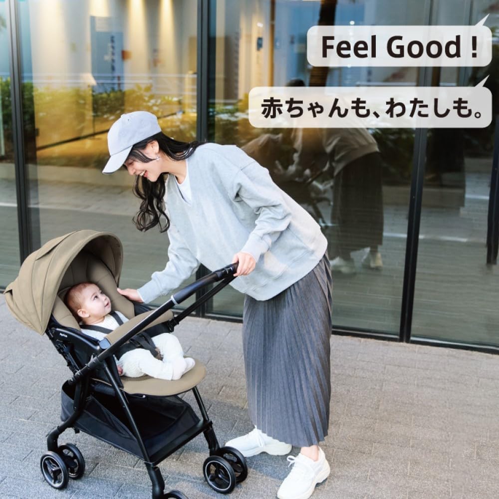 片手で簡単リクライニング:フィットリクライニングと、ベルトの付け外しがマグネットでパッと簡単:イージーベルト