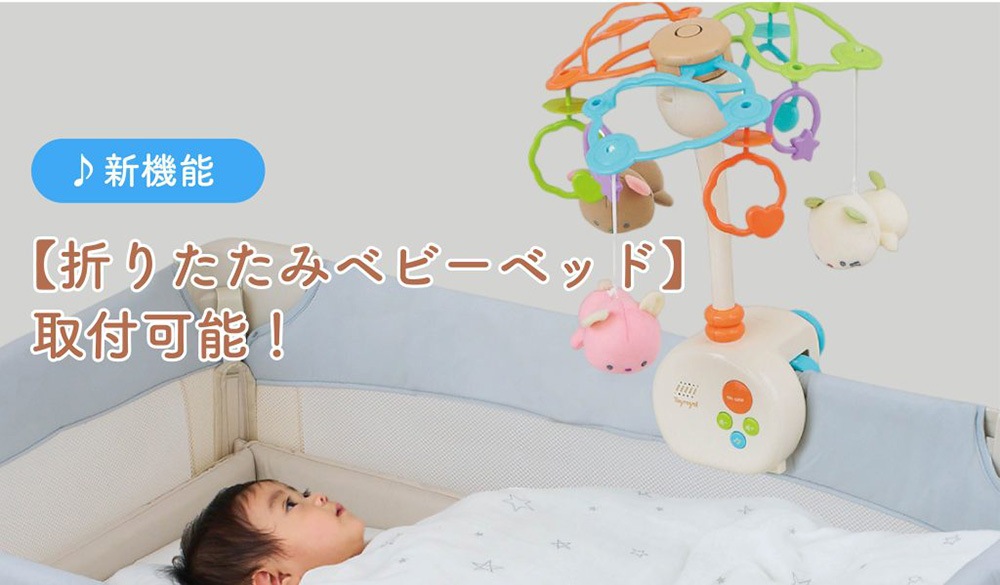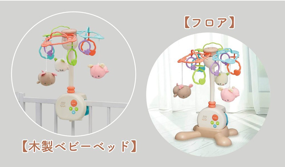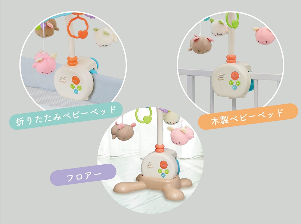 ベビーベッドのメリー・床置きのフロアメリーでも使えます。