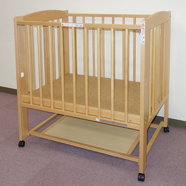 20%OFFコンパクトサイズ ハイタイプ ベビーベッドレンタル ワンタッチコンパクト 日本製 4輪キャスター付き 棚板付き